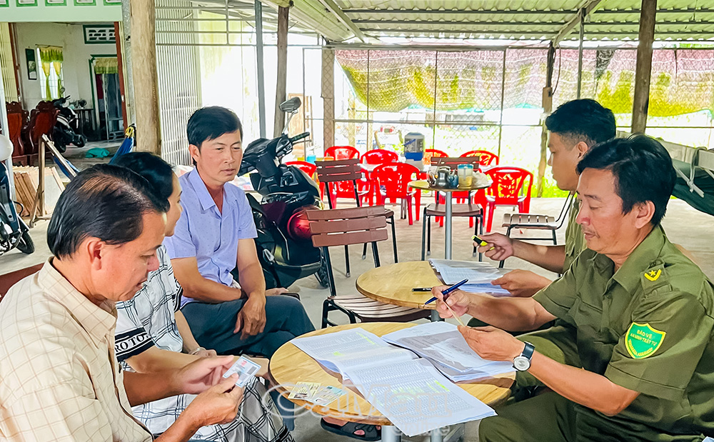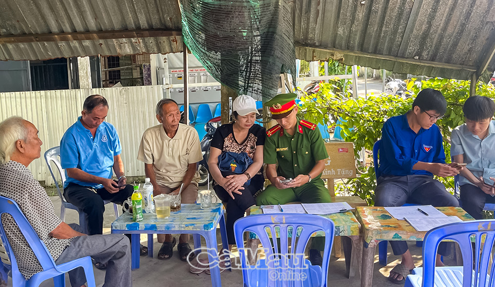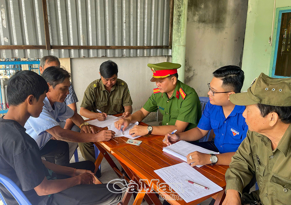 Lực lượng an ninh trật tự cơ sở xã Đầm Dơi trực tiếp đến từng hộ dân rà soát, hướng dẫn kê khai thông tin làm sạch dữ liệu đăng ký phương tiện.