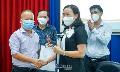 | Bà Quách Thanh Thoảng, Giám đốc Trung tâm Dịch vụ việc làm tỉnh Cà Mau, ký kết bản ghi nhớ hợp tác kết nối đưa người lao động Cà Mau trở lại làm việc với Trung tâm Dịch vụ việc làm tỉnh Bình Dương. |