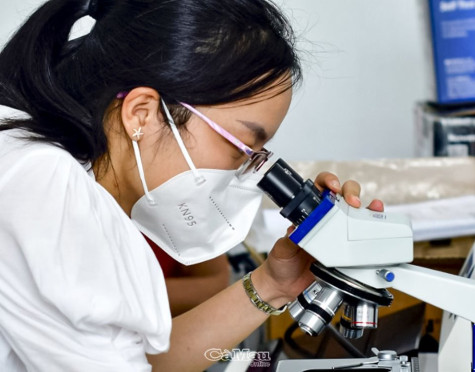 | Nữ kỹ thuật viên kiểm tra hệ thống xét nghiệm trước khi sử dụng tại Bệnh viện dã chiến số 3. Ảnh: THANH MINH |