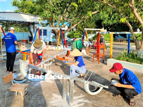 Xây dựng sân chơi cho đội viên, thiếu nhi huyện Hòa Bình. Ảnh: Đ.K.C