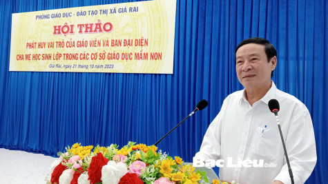 “Thông qua hội thảo nhằm tiếp tục tạo sự gắn bó, phối hợp chặt chẽ giữa nhà trường và gia đình, giữa giáo viên và phụ huynh để nâng cao chất lượng chăm sóc, giáo dục, giúp trẻ phát triển toàn diện và nâng cao chất lượng hoạt động của Ban đại diện CMHS ở các cơ sở giáo dục theo quy định của Bộ GD-ĐT tại Thông tư 55 ngày 22/11/2011 Ban hành điều lệ Ban đại diện CMHS. Qua đó góp phần cùng ngành Giáo dục TX. Giá Rai thực hiện thắng lợi nhiệm vụ năm học 2023 - 2024 với nhiều thành tích tiêu biểu, xuất sắc”, ông Nguyễn Văn Bình - Trưởng phòng GD-ĐT TX. Giá Rai, nhấn mạnh.