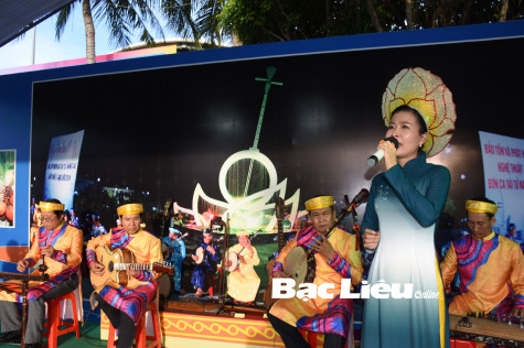 Biểu diễn đờn ca tài tử phục vụ du khách nhân Ngày hội Văn hóa - Du lịch Bạc Liêu năm 2022.