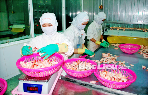 Chế biến thủy sản xuất khẩu - một trong những thế mạnh kinh tế hàng đầu của doanh nghiệp Bạc Liêu. Ảnh: K.T