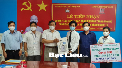 Sáng 1/9, đại diện Tập đoàn Phương Trang đã đến Ủy ban MTTQ Việt Nam tỉnh trao tặng 30 máy tạo oxy với tổng trị giá 500 triệu đồng, ủng hộ quỹ phòng chống dịch COVID-19 của tỉnh.