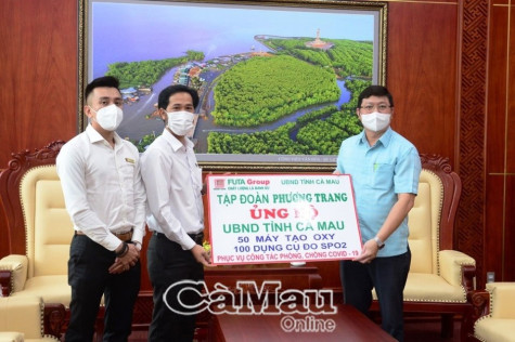 Dịp này, FUTA Group trao tặng cho tỉnh Cà Mau 50 máy tạo oxy và 100 dụng cụ đo SPO2, tổng trị giá khoảng 2 tỷ đồng để phục vụ công tác phòng, chống dịch Covid-19 trên địa bàn tỉnh.