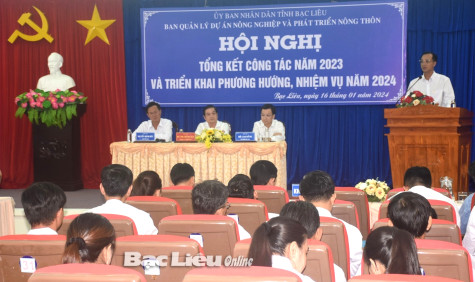 Phát biểu chỉ đạo tại hội nghị, Phó Chủ tịch UBND tỉnh - Huỳnh Chí Nguyện biểu dương những kết quả đạt được của Ban Quản lý dự án NN&PTNT tỉnh năm 2023. Đồng thời lưu ý năm 2024, Ban Quản lý dự án NN&PTNT tỉnh phải quyết liệt giải ngân vốn đầu tư công và xem đây là nhiệm vụ trọng tâm của Ban. Tập trung đẩy nhanh tiến độ thực hiện và giải ngân vốn đầu tư công ngay từ đầu năm 2024. Quan tâm công tác bồi thường tái định cư, phối hợp với địa phương trong công tác giải phóng mặt bằng. Chủ động phối hợp với các sở, ngành rút ngắn thời gian thẩm định dự án, công tác thẩm định, kiểm tra giám sát chất lượng công trình. Xử lý đơn vị thi công không đúng thời gian quy định…