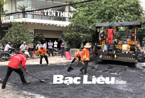 Thi công dự án nâng cấp đô thị TP. Bạc Liêu từ vốn đầu tư công. Ảnh: K.T