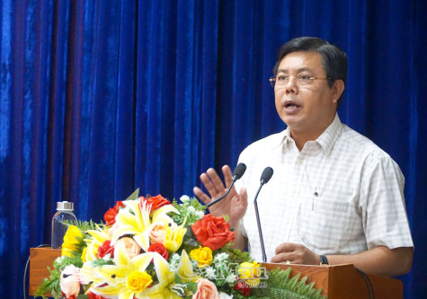 Đồng chí Phạm Thành Ngại, Phó bí thư Thường trực Tỉnh uỷ, phát biểu tại hội nghị.