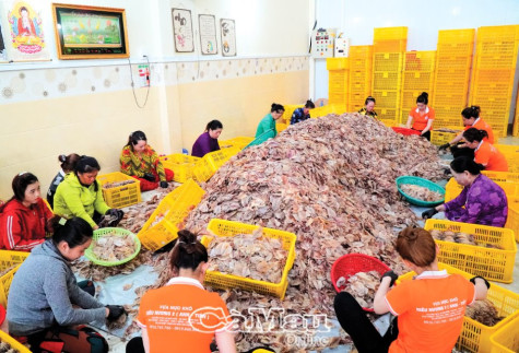Tạo sinh kế, việc làm, tăng thu nhập cho lao động nông thôn được xem là giải pháp giảm nghèo bền vững, khơi dậy tinh thần tự lực vươn lên thoát nghèo của người dân. (Ảnh chụp tại Vựa khô Kiều Nương 2 (Anh - Tiền), thị trấn Sông Ðốc, huyện Trần Văn Thời, ngày 16/5/2023). Ảnh: BĂNG THANH