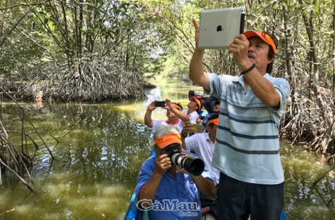 | Phát triển thương mại - dịch vụ theo hướng phục vụ du lịch và hậu cần khu kinh tế là một trong ba khâu đột phá mà Ðại hội Ðảng bộ huyện lần thứ XII đề ra. (Ảnh: Khách du lịch tham quan vườn chim Tư Na, thị trấn Năm Căn). |
