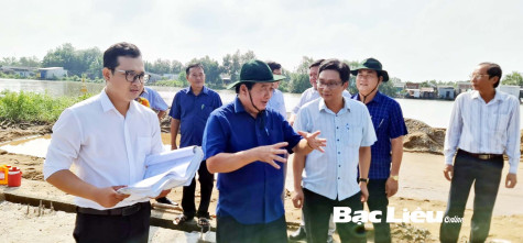 Kiểm tra công tác xây dựng bờ kè tại TX. Giá Rai. Ảnh: M.Đ