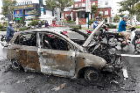 | Sau vài phút bốc cháy, chiếc xe đã bị thiêu rụi hoàn toàn. |