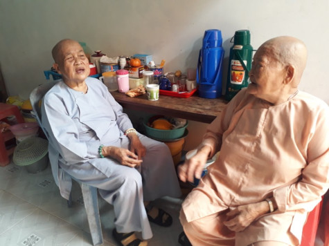 9 năm gắn bó những người già neo đơn, Sư cô Diệu Chánh cho biết: “Đến đây đủ hoàn cảnh, độ tuổi. Có người 60 tuổi, cũng có người gần 90 tuổi, họ gắn bó với nhau, gắn bó với chùa như một gia đình thật sự. Người khoẻ thì ngồi với nhau lặt mớ rau cọng cải, làm những việc nhẹ phụ giúp chùa, xem đó là niềm vui. Còn đối với những cụ già lớn tuổi sức yếu thì được những người trẻ hơn chăm sóc kỹ lưỡng, chu đáo. Nơi đây thật sự trở thành nơi để họ gắn bó nương tựa lúc tuổi già”.
