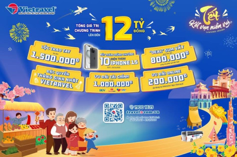Thành phố Hồ Chí Minh, ngày 15 tháng 11 năm 2023, Công ty Du lịch Vietravel chính thức công bố Chương trình khuyến mại chào Xuân 2024 với thông điệp “Tết - Kết vạn niềm vui”. Không chỉ dừng lại ở những ưu đãi lớn, những món quà giá trị khi đến mua tour trực tiếp cũng như online trên website travel.com.vn và app Vietravel, mà bên cạnh đó, các chặng hành trình Vietravel mang đến cho Quý khách hàng đều được làm mới về mặt trải nghiệm, có mức giá tốt nhất thị trường. Ưu đãi chào Xuân 2024 của Vietravel chính thức được áp dụng với các tour có ngày khởi hành từ 01/12/2023 đến hết 29/02/2024.