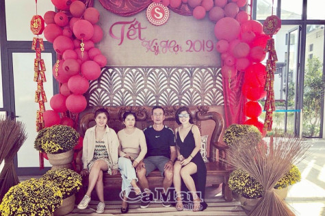 | Trish Quỳnh Như (áo đen) cùng gia đình đón tết 2019. |