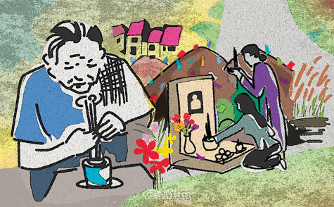 Khi tiết Thanh minh kết thúc, các ngôi mộ chỉ còn lại màu mới của vôi, của những mảnh giấy ngũ sắc phấp phới bay trong gió. Có người liên tưởng nó tựa như những cánh tay của người quá cố đang giã biệt người thân để trở về cõi hư vô trong vũ trụ mênh mông. Rồi những mảnh giấy ngũ sắc kia cũng không còn trên nấm mộ, nhưng niềm tin về sự phù hộ, độ trì của ông bà, tổ tiên đối với người còn sống vẫn ngự trị trong tâm hồn con cháu.
