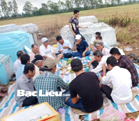 Một đại gia đình bày tiệc sau khi cúng mộ tổ tiên. Ảnh: T.M