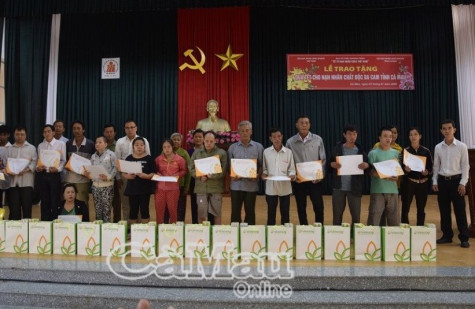 Tại Cà Mau, đoàn đã trao 50 suất quà cho NNCĐDC các huyện Thới Bình, Ngọc Hiển, U Minh, Cái Nước, Trần Văn Thời, mỗi suất gồm 1 triệu đồng tiền mặt và phần quà trị giá 150 ngàn đồng.