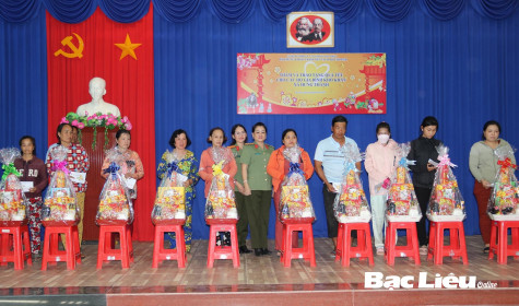 Lực lượng Công an tặng quà Tết cho người dân huyện Vĩnh Lợi.