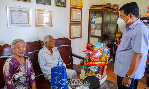 | Đồng chí Nguyễn Tiến Hải, Uỷ viên BCH Trung ương Đảng, Bí thư Tỉnh uỷ, Chủ tịch HĐND tỉnh Cà Mau, tặng quà và chúc Tết đồng chí Phạm Thạnh Trị, nguyên Phó bí thư Tỉnh uỷ, nguyên Chủ tịch UBND tỉnh. |