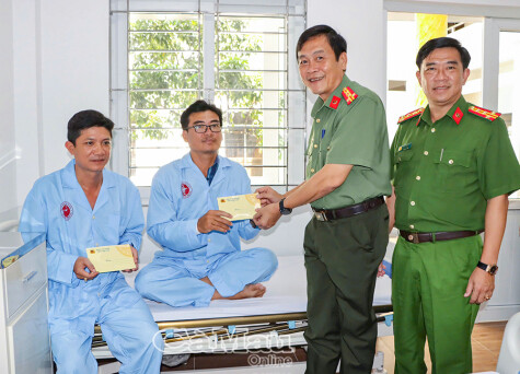 Thay mặt Đảng uỷ, lãnh đạo Công an tỉnh, Đại tá Hồ Việt Triều ghi nhận và biểu dương tinh thần dũng cảm của Trung tá Hồ Thanh Den và Trung tá Phan Nhựt Trường trong quá trình khống chế, bắt giữ đối tượng; đồng thời động viên hai đồng chí sớm hồi phục sức khỏe, tiếp tục cùng đồng đội giữ gìn an ninh trật tự, vì cuộc sống bình yên, hạnh phúc của Nhân dân.