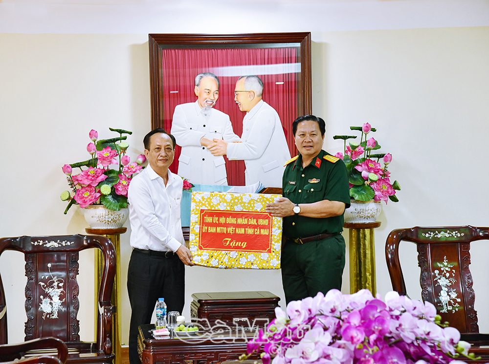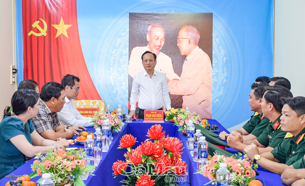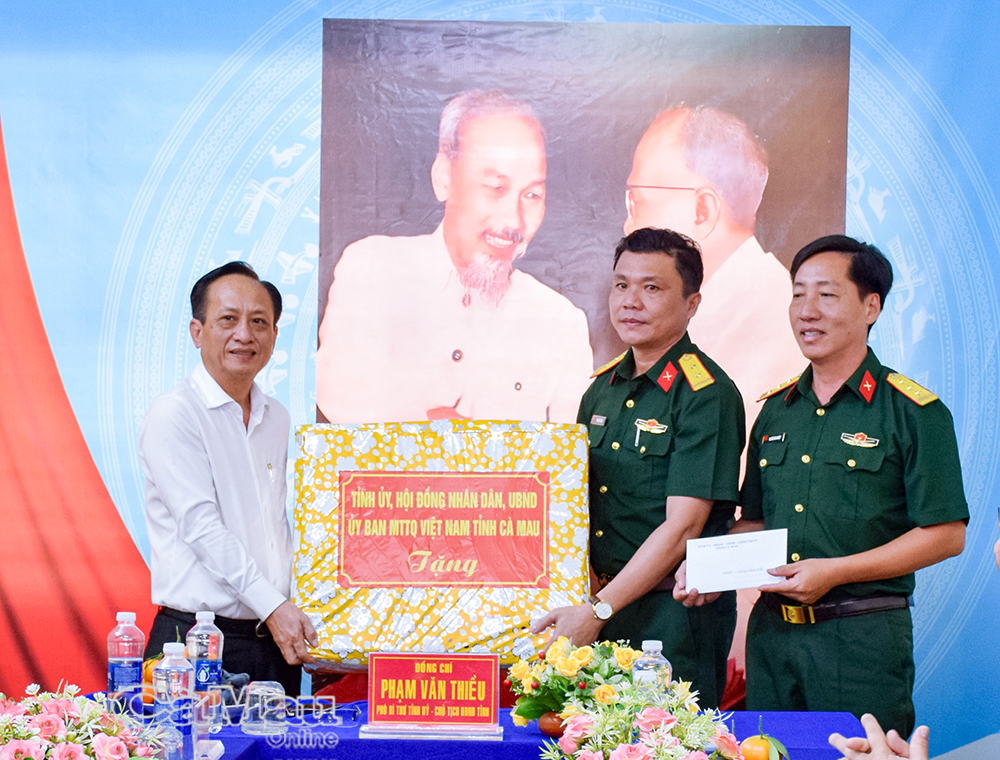 Đoàn đã đến thăm Bộ Chỉ huy Quân sự tỉnh, Trung đoàn 896 (phường Tân Thành). Thay mặt Tỉnh uỷ, HĐND, UBND, Uỷ ban Mặt trận Tổ quốc Việt Nam tỉnh Cà Mau, đồng chí Phạm Văn Thiều gửi lời chúc mừng tốt đẹp đến cán bộ, chiến sĩ; đồng thời ghi nhận, biểu dương những đóng góp quan trọng của lực lượng vũ trang trong sự nghiệp xây dựng và bảo vệ Tổ quốc. Đồng chí nhấn mạnh, hoạt động thăm hỏi, tặng quà thể hiện sự quan tâm sâu sắc của Đảng bộ, chính quyền và Nhân dân tỉnh Cà Mau, qua đó tiếp thêm động lực để cán bộ, chiến sĩ yên tâm công tác, hoàn thành tốt nhiệm vụ được giao.