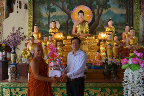| Phó Chủ tịch UBND tỉnh Cà Mau Trần Hồng Quân thăm tặng quà cho Hòa thượng Thạch Hà, Trưởng Ban thường trực Ban trị sự Giáo hội Phật giáo tỉnh Cà Mau, trụ trì chùa Monivongsa, Phường 1, TP. Cà Mau |