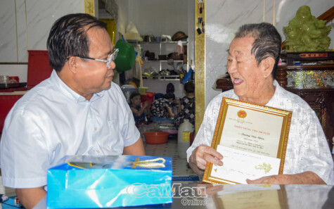 Theo đó, Phó chủ tịch UBND tỉnh Cà Mau Nguyễn Minh Luân đến thăm, tặng quà gồm Thiếp mừng thọ của Chủ tịch nước, phần quà bằng hiện vật 5 m vải lụa và tiền mặt 700.000 đồng và chúc thọ cụ Chương Văn Chủa (100 tuổi, Khóm 5, Phường 2); Giấy mừng thọ của Chủ tịch UBND tỉnh, phần quà bằng hiện vật trị giá 150.000 đồng, tiền mặt 500.000 đồng và chúc thọ cụ bà Tô Thị Quảng (90 tuổi, Khóm 4, Phường 9).