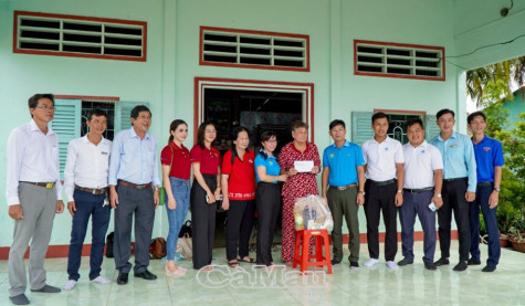 Theo đó, tại 2 xã, đoàn đến thăm và tặng quà 6 gia đình có công với cách mạng, gia đình chính sách. Đồng thời, trao tặng quà cho học sinh hoàn cảnh khó khăn của 2 trường THCS: Nguyễn Mai (Ấp 7, xã Khánh Tiến) và THCS Trần Ngọc Hy (Ấp 3, xã Khánh Thuận), gồm: 30 suất học bổng (500.000 đồng/suất); 150 suất quà cho học sinh; 4 xe đạp.