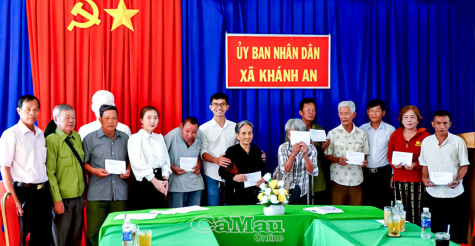Đoàn trao quà cho 9 gia đình, nạn nhân chất độc da cam/đioxin tại xã Khánh An, huyện U Minh.