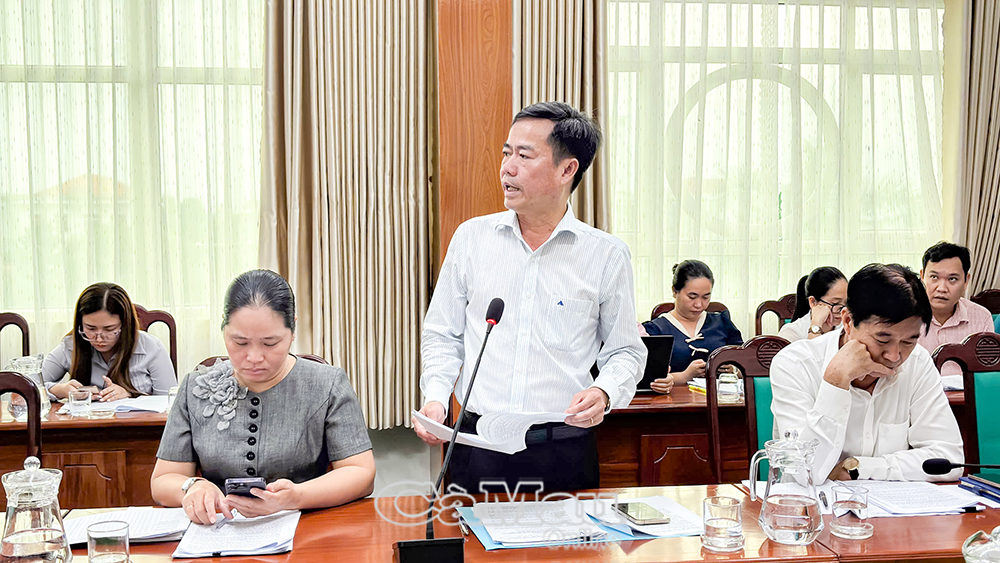 Bà Nguyễn Thu Tư, Giám đốc Sở Dân tộc và Tôn giáo, đóng góp ý kiến vào dự thảo Nghị quyết về phân bổ nguồn vốn sự nghiệp thực hiện Chương trình mục tiêu quốc gia phát triển kinh tế - xã hội vùng đồng bào dân tộc thiểu số và miền núi năm 2025 trên địa bàn tỉnh Cà Mau (sau sắp xếp).