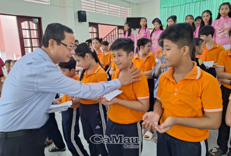(CMO) Nhân Tháng hành động vì trẻ em, sáng ngày 25/5, ông Nguyễn Quốc Thanh, Tỉnh ủy viên, Giám đốc Sở Lao động - Thương binh và Xã hội, đã đến thăm và tặng quà trẻ em khuyết tật đang được nuôi dưỡng tại Trung tâm Nuôi dạy trẻ khuyết tật - Mồ côi Nhân Ái (TP Cà Mau).