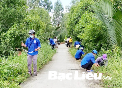 Đoàn viên - thanh nên phát quang bụi rậm. Ảnh minh họa: H.L