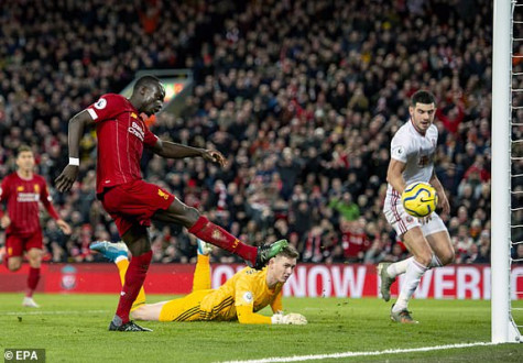 Mane ( đỏ), tiếp tục tỏa sáng cùng Liverpool.