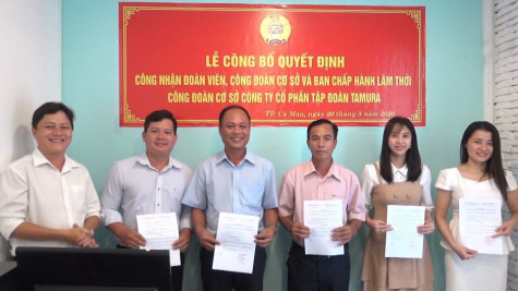 Báo Cà Mau (CMO) Ngày 20/3, Công ty Cổ phần Tập đoàn Tamura công bố quyết định công nhận đoàn viên, công đoàn cơ sở và Ban chấp hành lâm thời Công đoàn cơ sở Công ty.