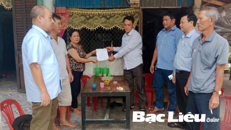 Trao lệnh gọi nhập ngũ cho gia đình thanh niên Huỳnh Minh Nhí. Ảnh: C.P