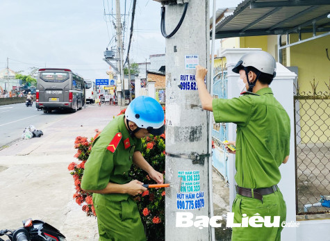 ĐV-TN tẩy xóa quảng cáo sai quy định trên cột điện.