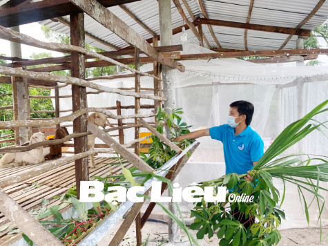 Mô hình nuôi dê của anh Hồ Văn Xuyên (ấp Cây Méc, xã Ninh Thạnh Lợi, huyện Hồng Dân) do Huyện đoàn - Hội LHTN huyện Hồng Dân hỗ trợ đầu tư. Ảnh: H.L