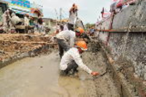 | Mặt đường đoạn từ cầu Huỳnh Thúc Kháng đến chợ Phường 7 đang được đẩy nhanh tiến độ xây dựng. |
