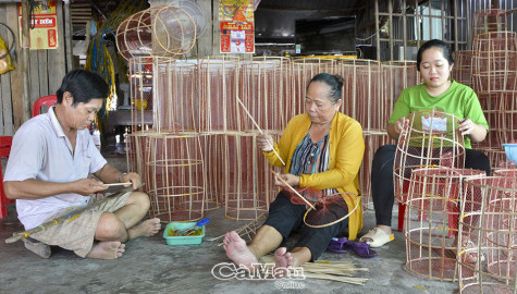 Người dân Thanh Tùng chí thú làm ăn. Ảnh: Bà con nâng cao thu nhập từ nghề đan lờ.