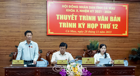 Cụ thể, những tờ trình, dự thảo nghị quyết được đưa ra thảo luận với các nội dung như: về quy định mức chi bảo đảm cho công tác phổ biến, giáo dục pháp luật, chuẩn tiếp cận pháp luật và hòa giải ở cơ sở trên địa bàn tỉnh; về việc quyết định biên chế công chức trong các cơ quan, tổ chức hành chính nhà nước của tỉnh Cà Mau năm 2024; về việc phê duyệt số lượng người làm việc hưởng lương từ ngân sách nhà nước trong các đơn vị sự nghiệp công lập chưa tự bảo đảm chi thường xuyên và biên chế các hội có tính chất đặc thù của tỉnh Cà Mau năm 2024; về dự toán ngân sách tỉnh Cà Mau năm 2024; về phân bổ dự toán ngân sách tỉnh Cà Mau năm 2024; quy định chính sách hỗ trợ giá nước sạch sinh hoạt trên địa bàn tỉnh; bổ sung danh mục, điều chỉnh Kế hoạch đầu tư công trung hạn giai đoạn 2021-2025 tỉnh Cà Mau; về Kế hoạch đầu tư công năm 2024 và bổ sung Kế hoạch vốn đầu tư phát triển nguồn ngân sách trung ương năm 2023 thực hiện Chương trình mục tiêu quốc gia xây dựng nông thôn mới; về danh mục dự án cần thu hồi đất năm 2024; ban hành Quy định nguyên tắc, tiêu chí và định mức phân bổ vốn ngân sách địa phương thực hiện Chương trình mục tiêu quốc gia xây dựng nông thôn mới và Chương trình mục tiêu quốc gia giảm nghèo bền vững giai đoạn 2021-2025 trên địa bàn tỉnh; về kế hoạch phát triển kinh tế - xã hội tỉnh Cà Mau năm 2024; quy định hỗ trợ mức đóng bảo hiểm y tế cho hộ thoát nghèo và hộ thoát cận nghèo trên địa bàn tỉnh Cà Mau đến năm 2025;…