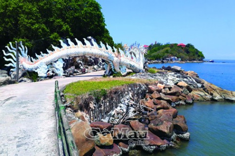 | Nhiều phần kè trên Hòn Đá Bạc để giữ các công trình điểm nhấn du lịch có dấu hiệu sạt lở. |