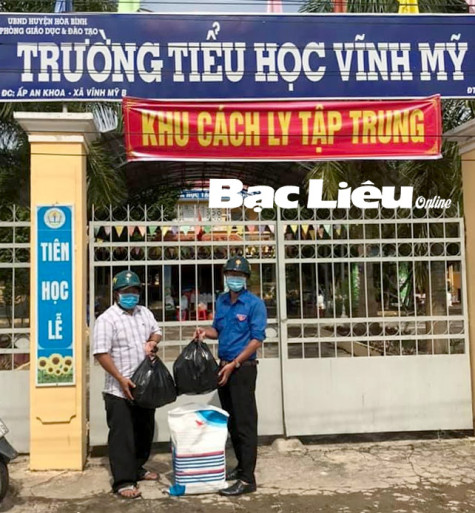 Tặng quà cho người dân tại khu cách ly tập trung xã Vĩnh Mỹ B (huyện Hòa Bình).