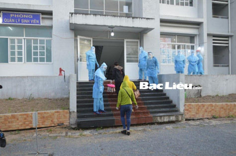 Tiếp nhận người vào cách ly tập trung tại Khu nhà ở sinh viên (Phường 1, Thành phố Bạc Liêu).