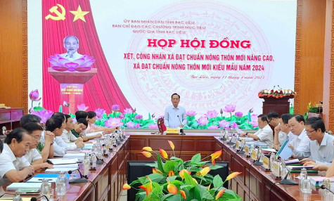 (BL-MĐ) Chiều 11/4, ông Phạm Văn Thiều - Chủ tịch UBND tỉnh, Trưởng Ban Chỉ đạo các chương trình mục tiêu quốc gia tỉnh chủ trì cuộc họp hội đồng xét, công nhận 4 xã: Phong Tân (TX. Giá Rai), Định Thành, Định Thành A (huyện Đông Hải) đạt chuẩn nông thôn mới (NTM) nâng cao và Phong Thạnh A (TX. Giá Rai) đạt chuẩn NTM kiểu mẫu về giáo dục năm 2024.