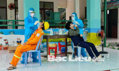 Lấy mẫu tầm soát COVID-19 trong cộng đồng sau khi TP. Bạc Liêu phát hiện chùm ca bệnh tại Công ty tài chính F88.