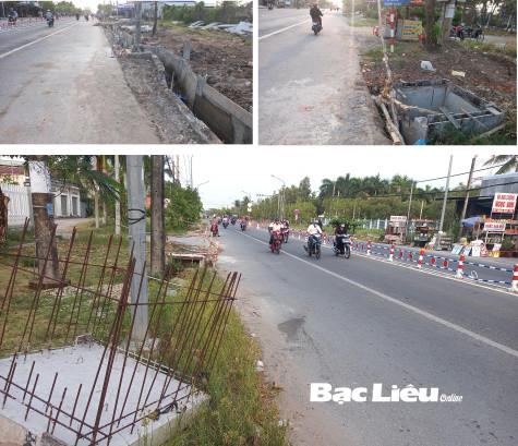 Dọc theo tuyến đường 23 tháng 8 (Phường 8, TP. Bạc Liêu) đoạn từ gần Khu công nghiệp Trà Kha đến gần chân cầu Dần Xây, nhà thầu đang đào xới mặt đường, thi công hệ thống thoát nước hai bên. Tuy có rào chắn theo quy định, song một vài điểm đang thi công dang dở không được giăng dây phản quang, che chắn cảnh báo hố cũng còn khá sơ sài (ảnh). Bên cạnh đó, ven tuyến hiện tập kết khá nhiều vỉ bê-tông có những thanh sắt nhọn không được rào chắn khiến người tham gia giao thông có cảm giác bất an vì tiềm ẩn nguy cơ mất an toàn.