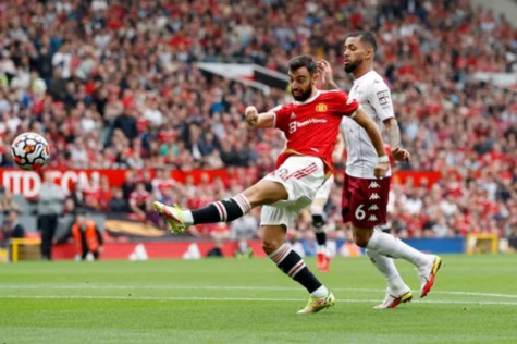 | Fernandes (áo đỏ) đá hỏng 11 m khiến Man Utd mất điểm ở phút bù giờ. |