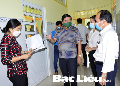 Đoàn cán bộ UBND TX. Giá Rai khảo sát điều kiện cơ sở vật chất tại hộ ông T.V.Q (ấp 5, xã Phong Tân) để thực hiện thí điểm cách ly y tế tại nhà đối với người về từ vùng dịch.