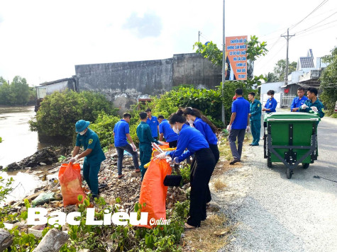 Bên cạnh đó, Thị đoàn còn thực hiện nhiều phần việc thiết thực như: Đổi rác thải nhựa lấy dụng cụ học tập, dọn vệ sinh ở bờ kênh Xóm Mới (ảnh), bốc dỡ bảng quảng cáo sai quy định trên tường và các trụ điện…